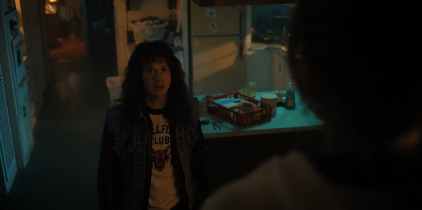 Группа в Хокинсе идет к Эдди, но находит хижину Рика в окружении полиции. Смерть Патрика изменила все. Пауэлл публично называет Эдди главным подозреваемым на пресс-конференции, и его имя теперь во всех новостях. Эдди звонит группе по украденной рации, голос дрожит от страха. Он велит встретиться в лесу, подальше от дорог.