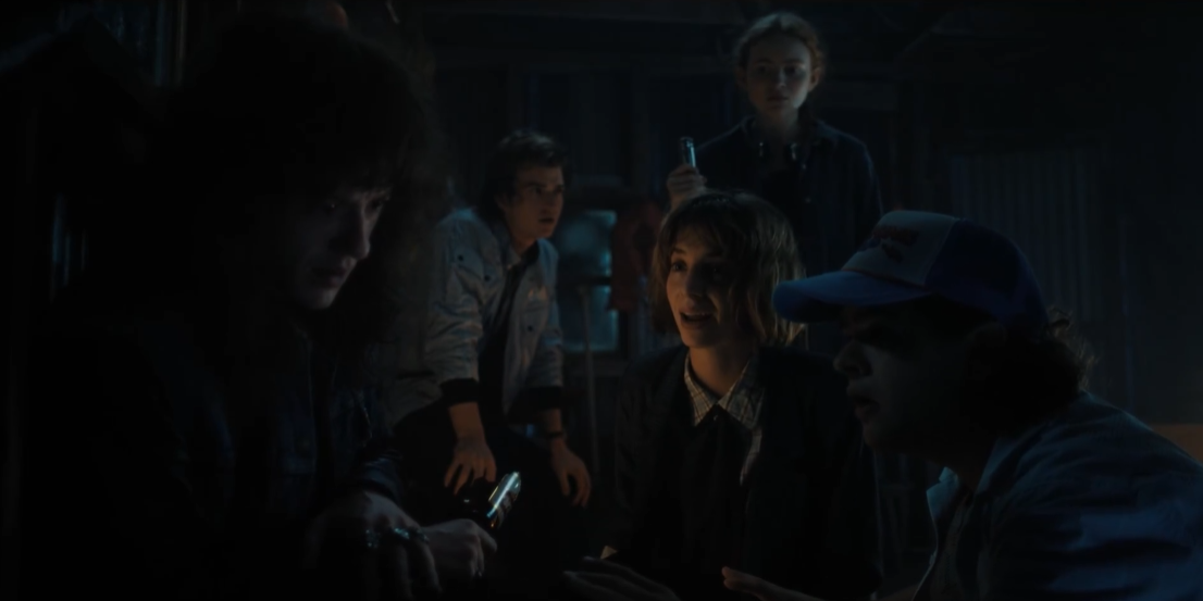 В Хокинсе Дастин, Стив, Робин и остальные понимают, что связь между мирами возможна через электричество. Они крадут у Холли игрушку, подключают ее и начинают переписку с ребятами в Перевернутом мире. Дастин объясняет логику Векны: каждое убийство создает врата, и когда таких точек будет четыре, граница между мирами окончательно рухнет. Следующая потенциальная точка – трейлер Эдди, где умерла Крисси.
