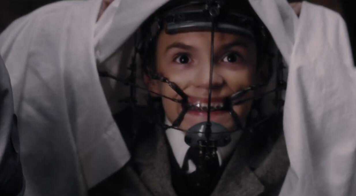 Многие зрители запомнили страшную металлическую конструкцию, которую маленький Вилли носил в детстве. Вонка с брекетами – это настоящий кошмар любого ребенка, увидевшего сказку. Эта система называется аппаратом Нормана, в фильме слегка преувеличили масштабы бедствия, но да – раньше люди ходили с брекетами, привязанными к голове со всех сторон.