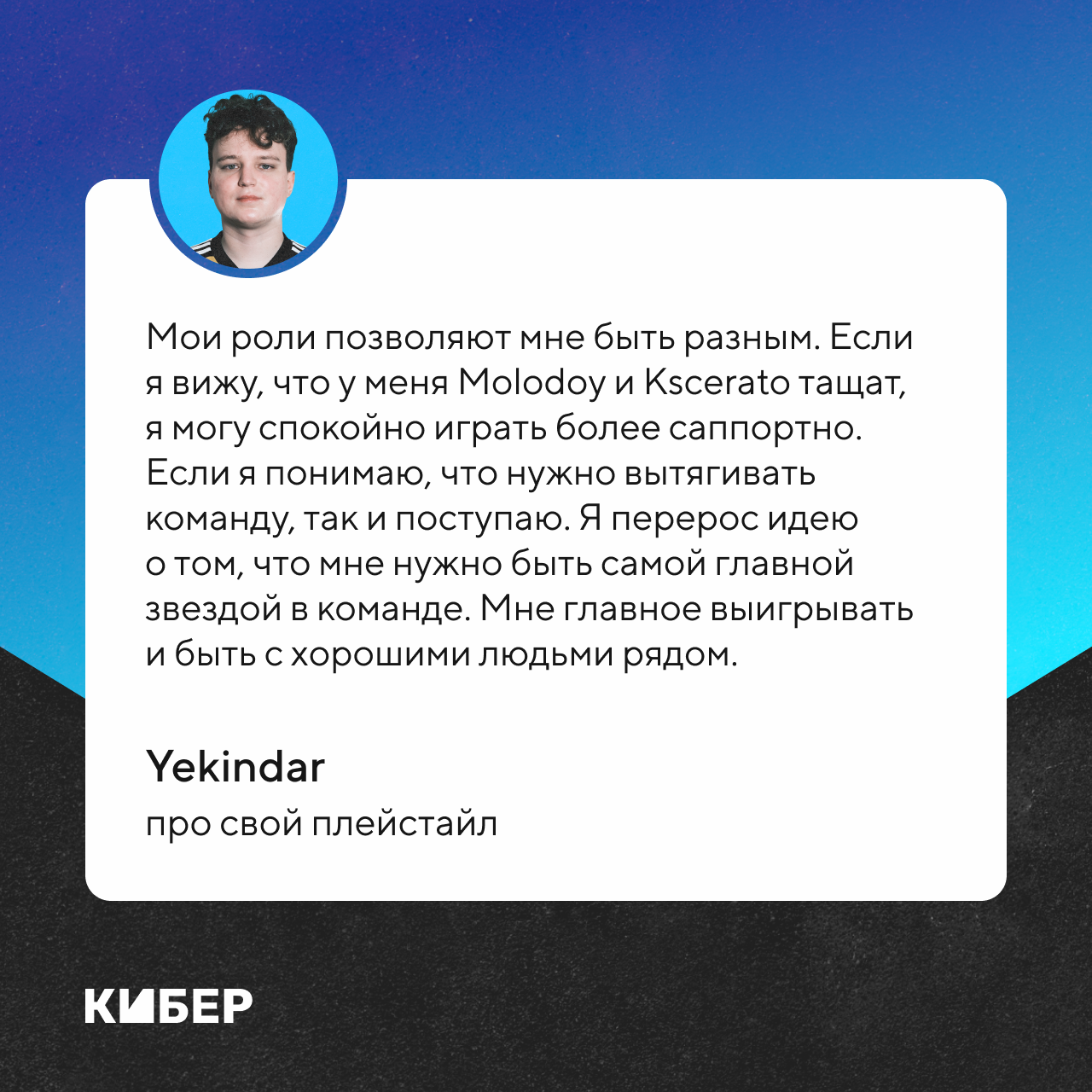 А у меня могут быть матчи, когда прет, и мои роли позволяют мне быть разным. И в зависимости от того, против кого мы играем и что нужно моей команде, я способен подстраиваться. Если я вижу, что у меня, например, Molodoy и Kscerato тащат, я могу спокойно играть более саппортно, не брать игру на себя. Если я понимаю, что нужно вытягивать команду, так и поступаю.