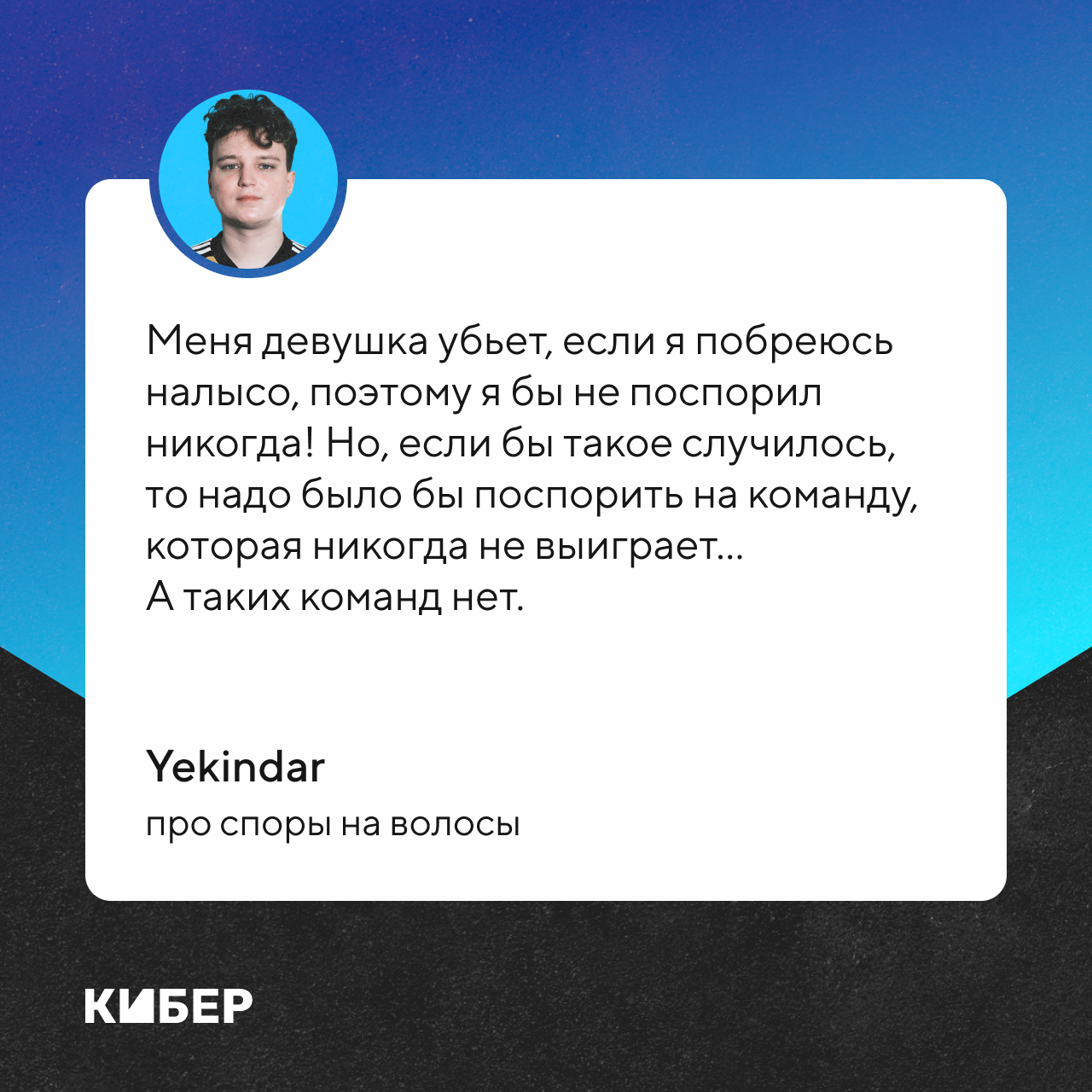 – Наверное, ты знаешь, что Mantuu побрился налысо из-за вашей победы на IEM Chengdu. Ты бы сам поспорил на такое? И если да, то ради какой команды готов был бы побриться?