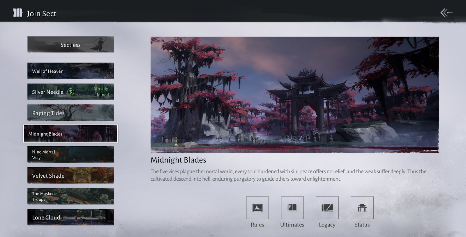 Секта подходит для тех, кто жаждет доминировать в битвах и не боится морального мрака.