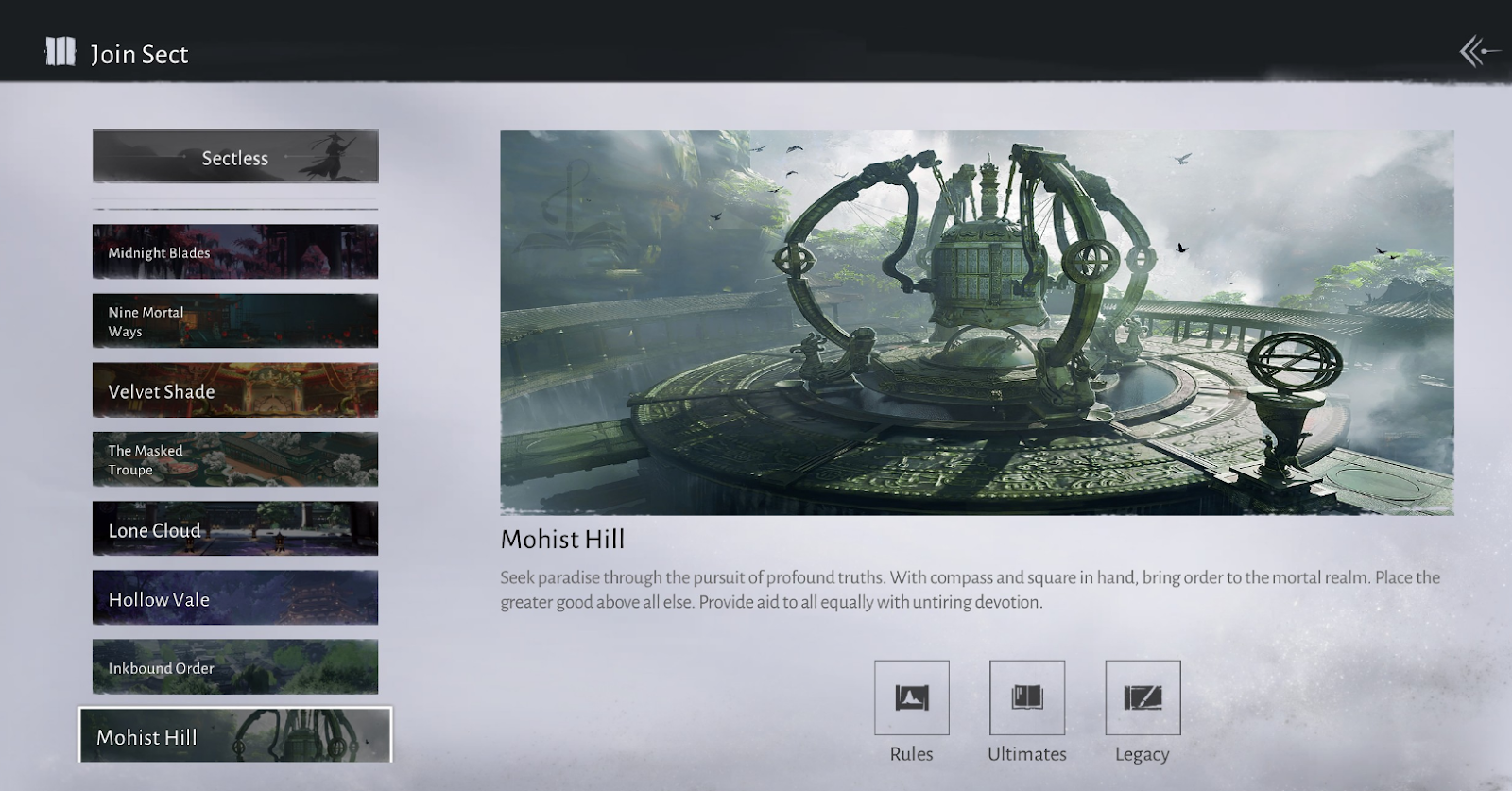 Секта подходит для альтруистов, ценящих справедливость выше всего.