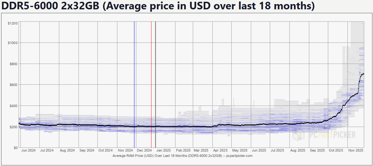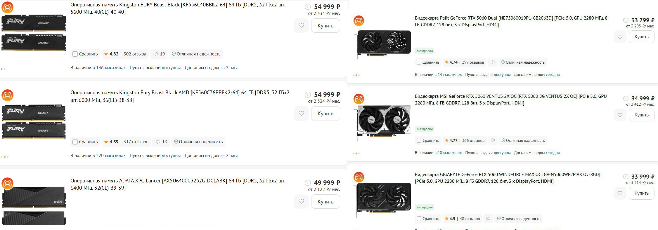 Наборы на 64 ГБ DDR5 уже обогнали по стоимости бюджетную игровую видеокарту RTX 5060.