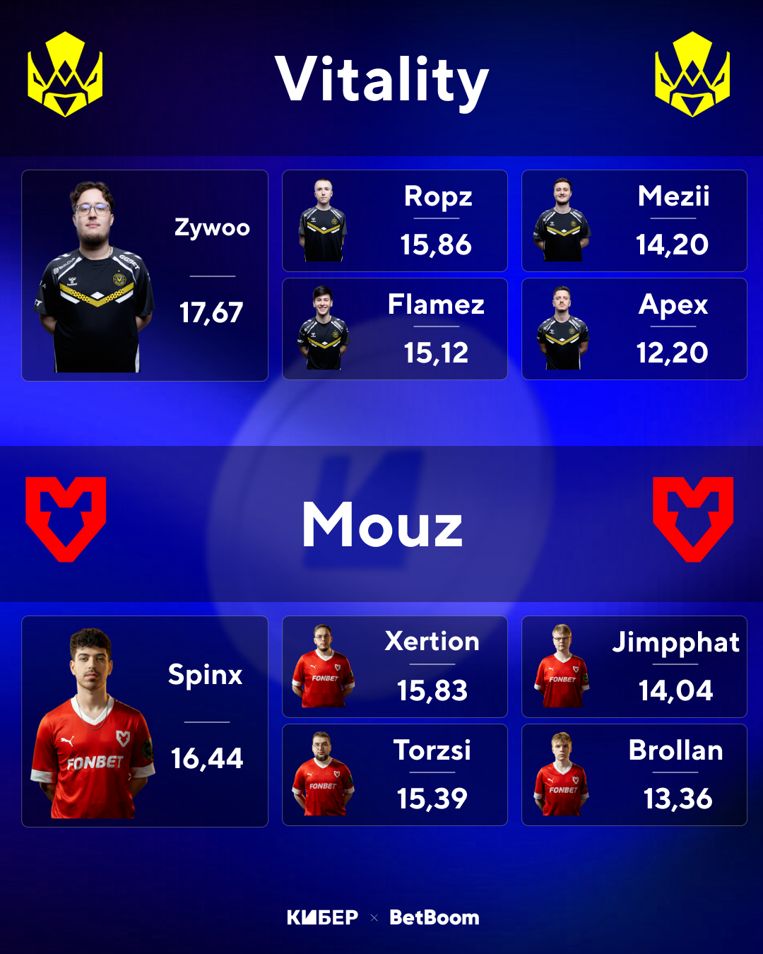 ➢ Zywoo вне конкуренции, но Vitality берет не только огневой мощью, а слаженной игрой.