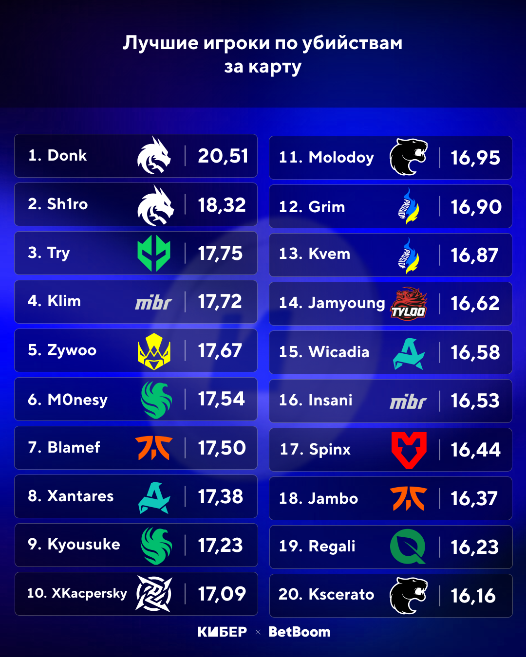 Ко второй стадии мейджора уже не осталось случайных команд. Только 24 лучших состава и 120 игроков. Мы решили выяснить, кто из них чаще убивает, и собрали статистику по каждому. Она послужит шпаргалкой для ставок на индивидуальный тотал игроков.