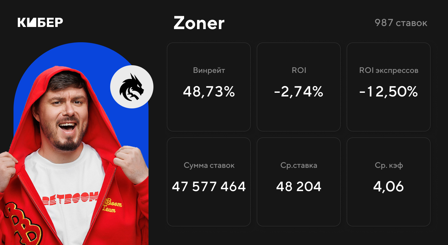 ➢ Zoner проставил больше всех среди участников исследования – больше 47 млн, хотя в августе на его счету было ставок на 23 млн.