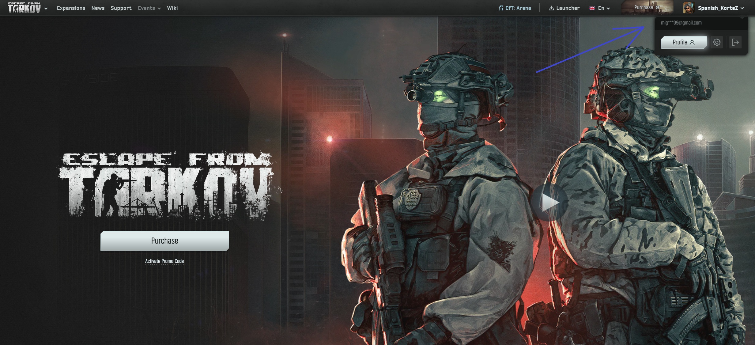 На сайте: переходим на официальный сайт игры, где у вас должен быть аккаунт. Смотрим в правый верхний угол, где находится ваш профиль. Нажимаем на него.
