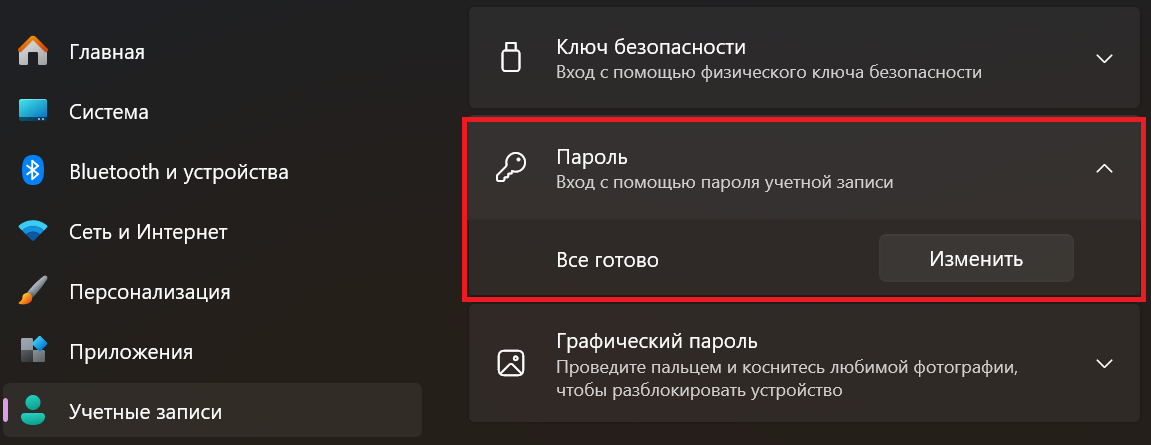 После успешной настройки пароля кнопка его создания сменится на «Изменить пароль».