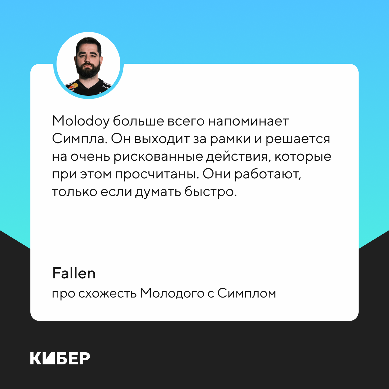 – Molodoy больше всего напоминает... Пожалуй, Симпла. Он выходит за рамки и решается на очень рискованные действия, которые при этом просчитаны. Причем просчитаны мгновенно. Они работают, только если думать быстро.