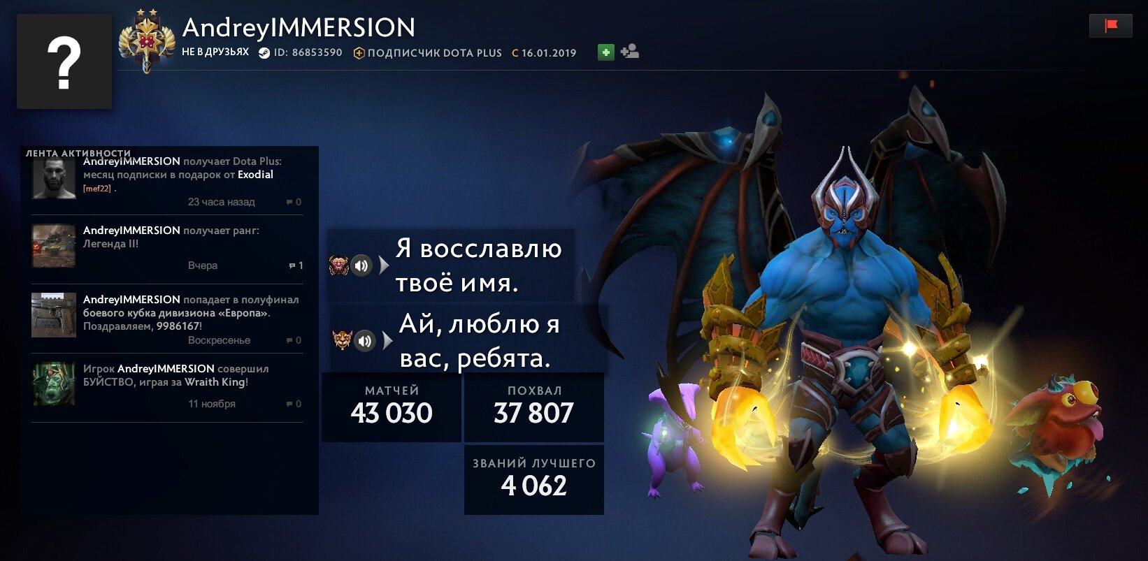 Настоящая легенда Доты Андрей Иммершен добился ранга «Легенда II» (~3230 MMR), хотя еще в мае его званием был лишь «Рекрут II» (~150 MMR)! Андрей мощно поднял ~3000 MMR за последние 7 месяцев. Число совсем немаленькое, поэтому я детально разобрался, как он это провернул.