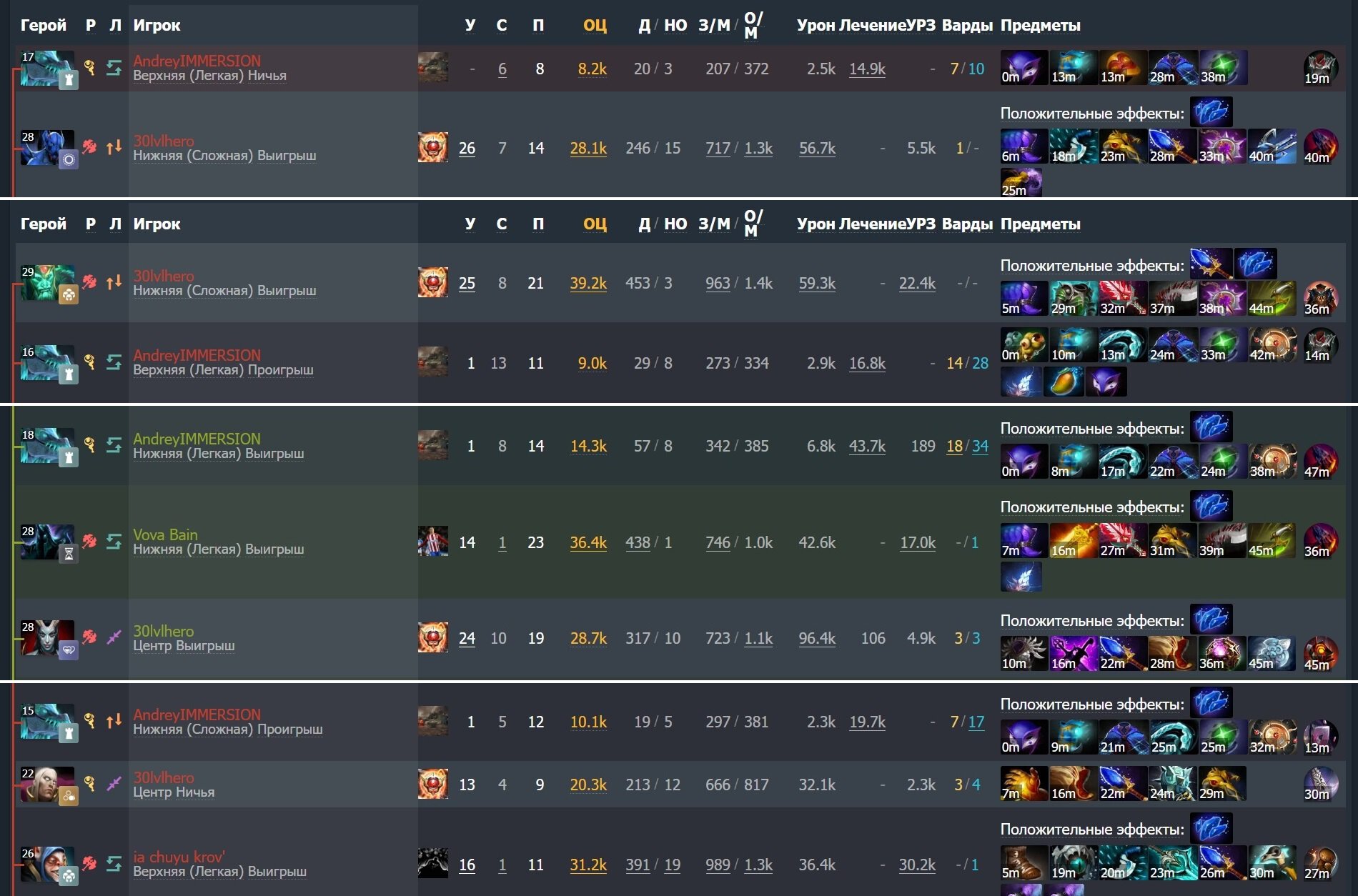 И в подавляющем большинстве матчей в пати (которое часто состояло из одних и тех же игроков) с Иммершеном «30lvlhero» играл на коре и был с запасом лучшим игроком в лобби, пока Андрей там, прямо скажем, присутствовал. Как неожиданно!