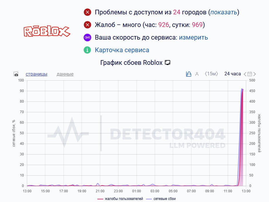 Блокировка отобразилась в статистике сервиса Downdetector.