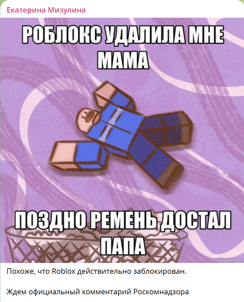 ● Следующий ее пост оказался неутешительным: «Похоже, что Roblox действительно заблокирован. Ждем официальный комментарий Роскомнадзора».
