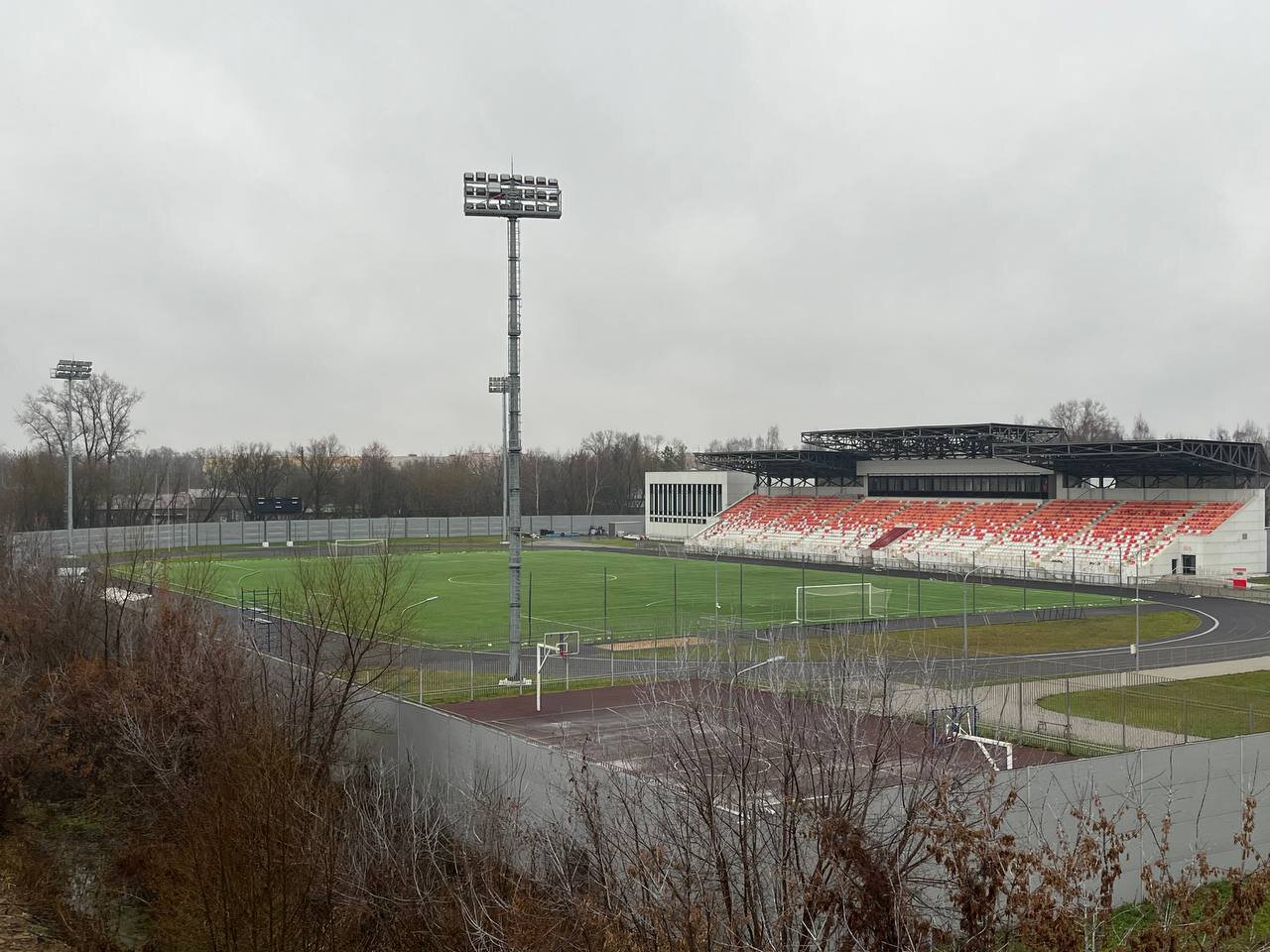 Стадион находится возле железнодорожных путей. В 2020-м его реконструировали, поэтому выглядит вполне опрятно. Сезон Второй лиги Б, группы 3, где играет хозяйка стадиона, закончился почти месяц назад. Все помещения стадиона закрыты, поле пустует. За долгую историю «Знамя Труда» дважды добиралось до финала кубка СССР, но команда ни разу не играла в сильнейшем футбольном дивизионе нашей страны.