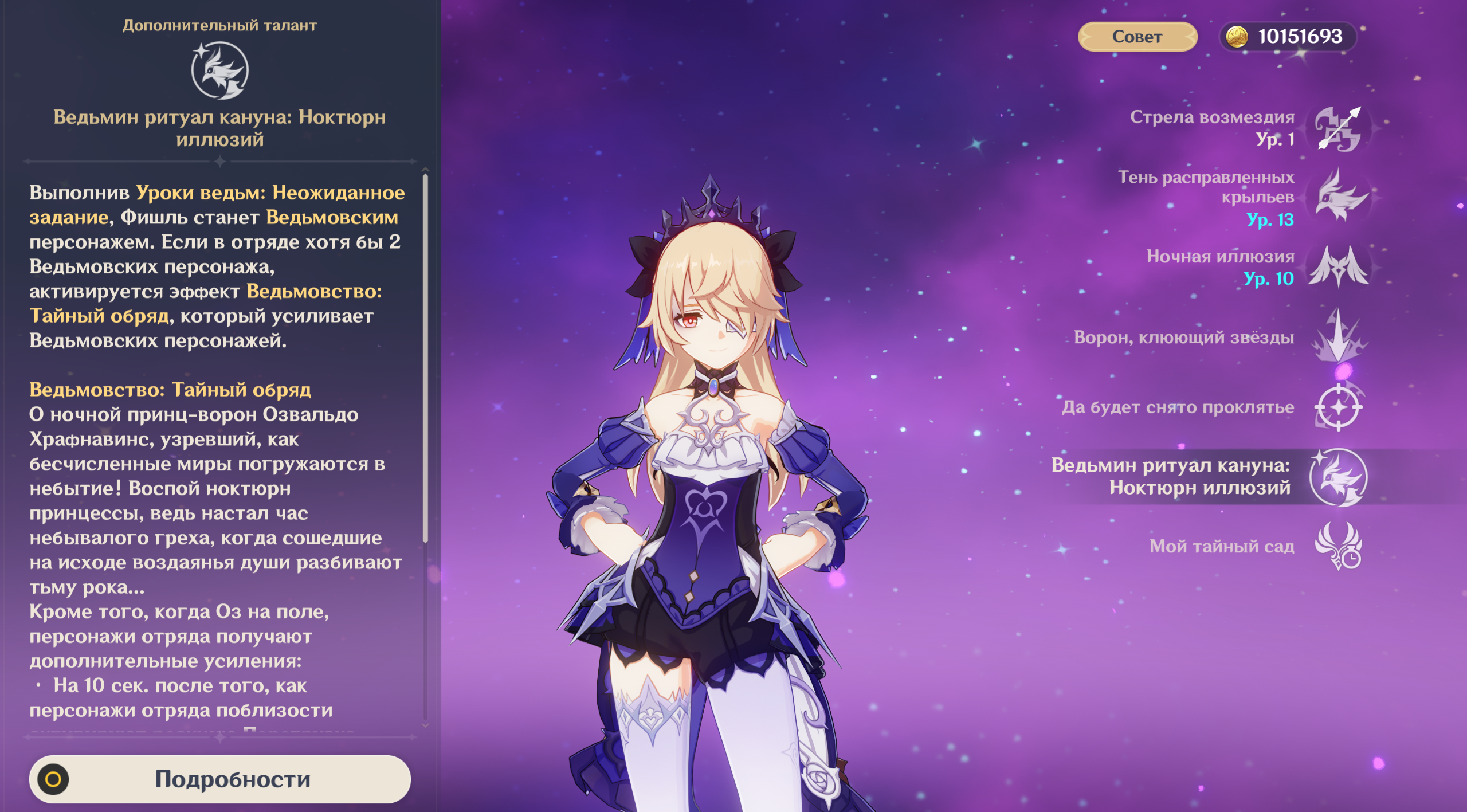 Если завершите квест персонажа, он станет «Ведьмовским» и будет использовать усиления навыков через резонанс «Ведьмовство: Тайный обряд». Он прописан во всех обновленных талантах и созвездиях таких героев.