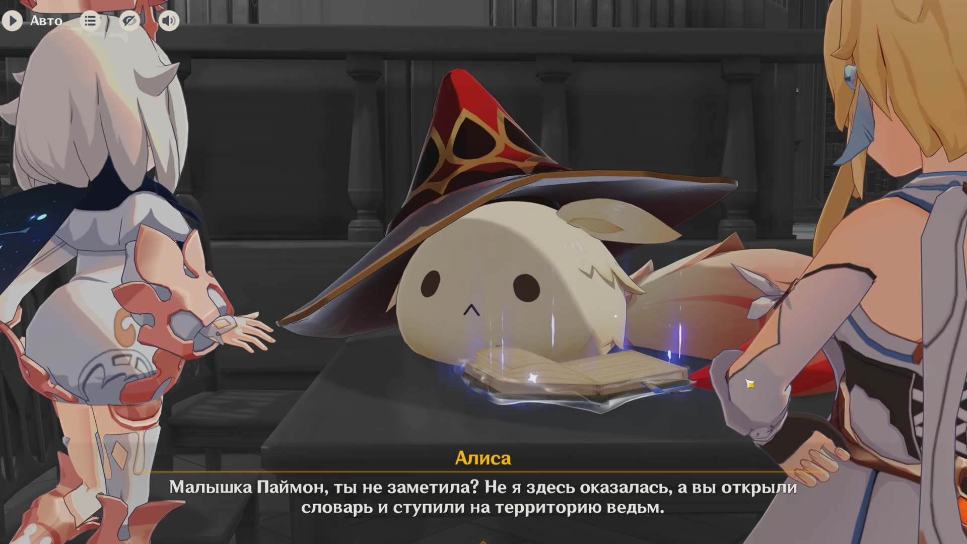 Во время разбора появится необычная книга, и из нее вылезет додоко в облике Алисы. Она напомнит о договоре ведьм с Варкой, который касается защиты Мондштадта, и попросит поддержать местных героев, чтобы они смогли развить свои способности.