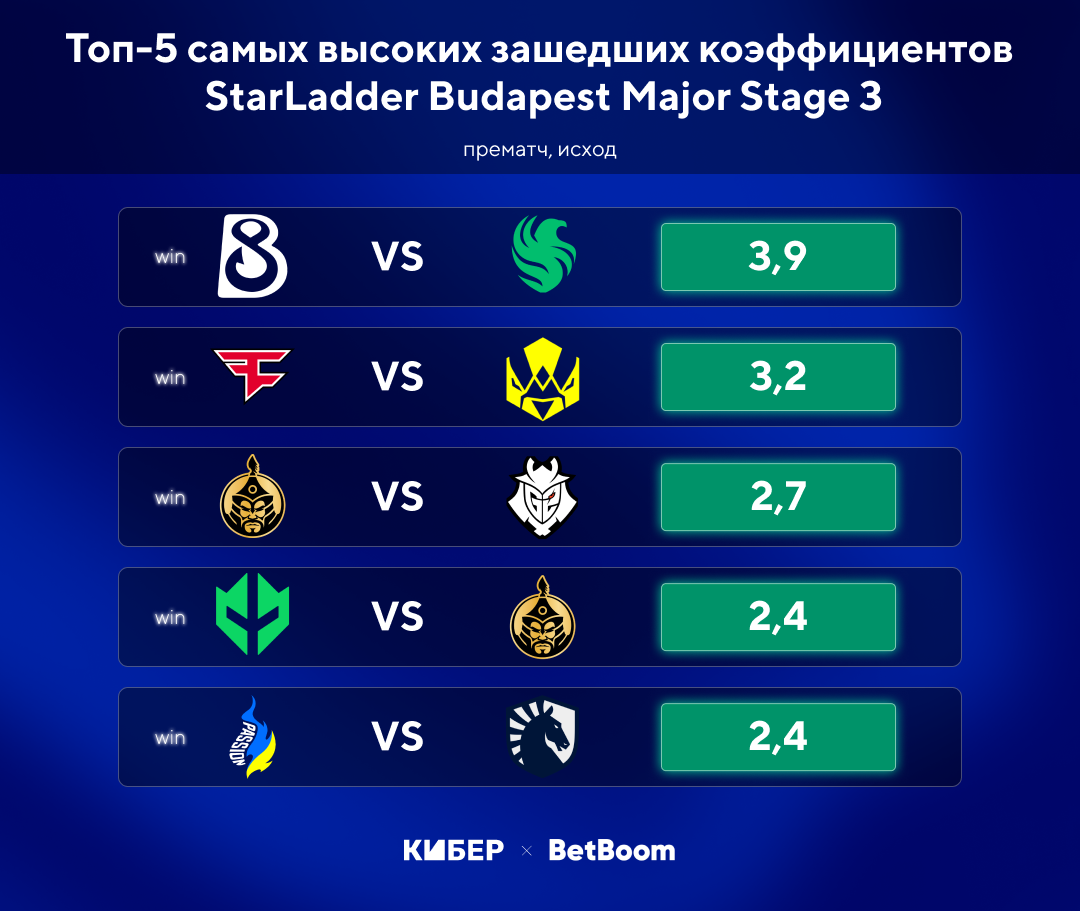 Vitality, Mongolz и Falcons оступились в первом Во1. Как раз эти результаты и попали в топ самых высоких кэфов стадии. Примечательно, что до матча в Будапеште Falcons потерпели последнее поражение на Ancient от все той же B8 только на прошлом мейджоре.