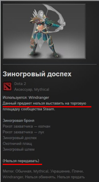 - Событийные ограничения. Во время The International или ивентов вроде Crownfall правила могут меняться. Проверьте описание предмета: если там есть тег «Нельзя передать», то техподдержка не поможет.