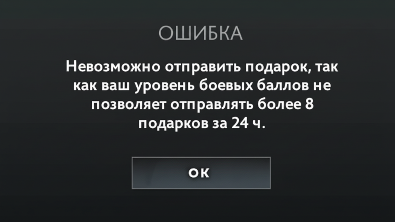 Valve ввела лимиты, чтобы защитить аккаунты от взлома и слива инвентаря. Стандартное ограничение – 8 подарков за 24 часа.