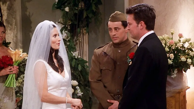 Свадьба Моники и Чендлера состоялась в 24 серии 7 сезона. Церемония была разделена на две части, чтобы уделить внимание как подготовке, так и самому торжеству.