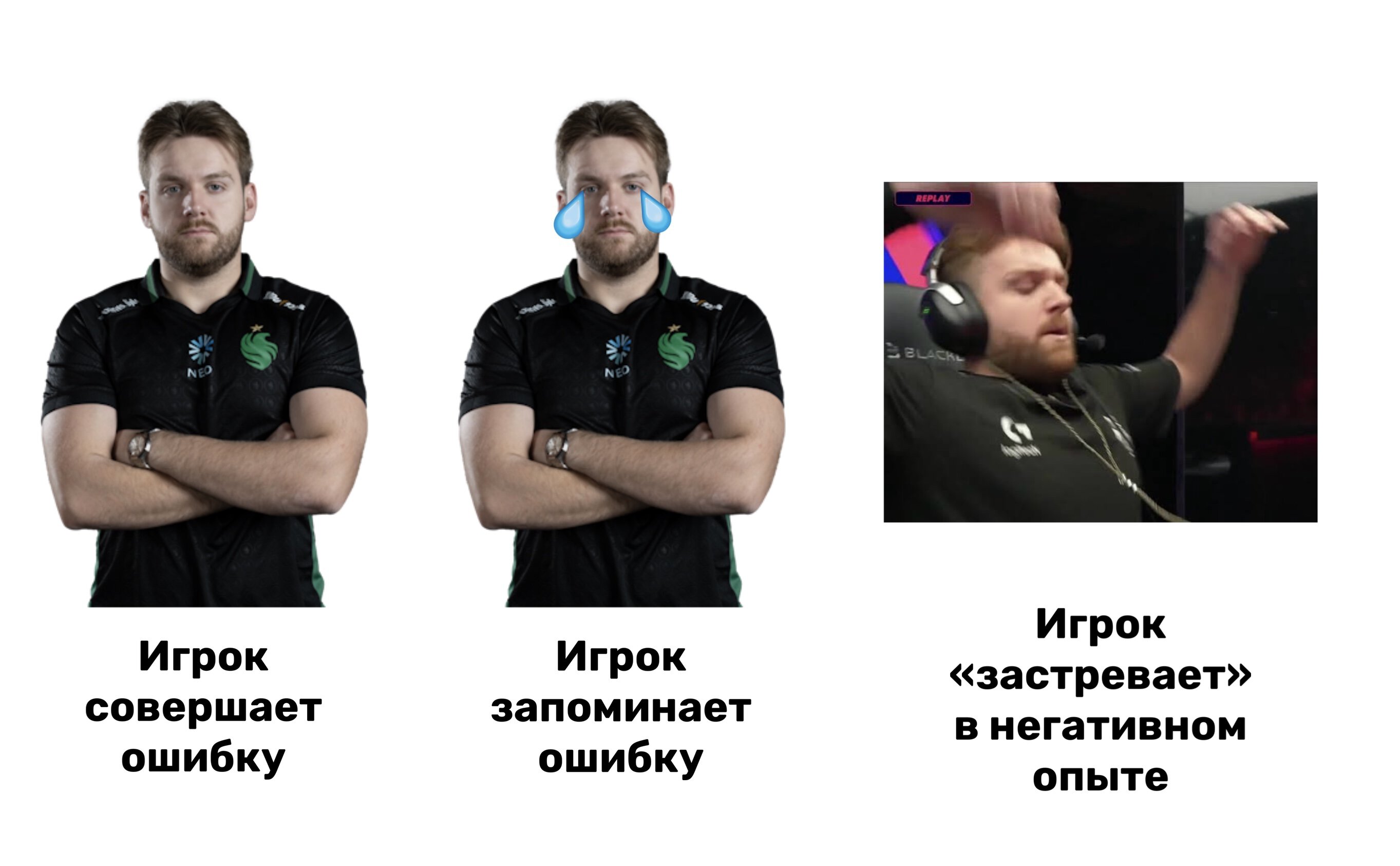 Для профессиональных игроков не менее страшно и то, что сильное напряжение иногда вызывает заторможенность реакций или трудности с концентрацией. Прицеливаться становится сложнее, принимать верные решения тоже. А неудачные действия еще больше усиливают напряжение – получается замкнутый круг.