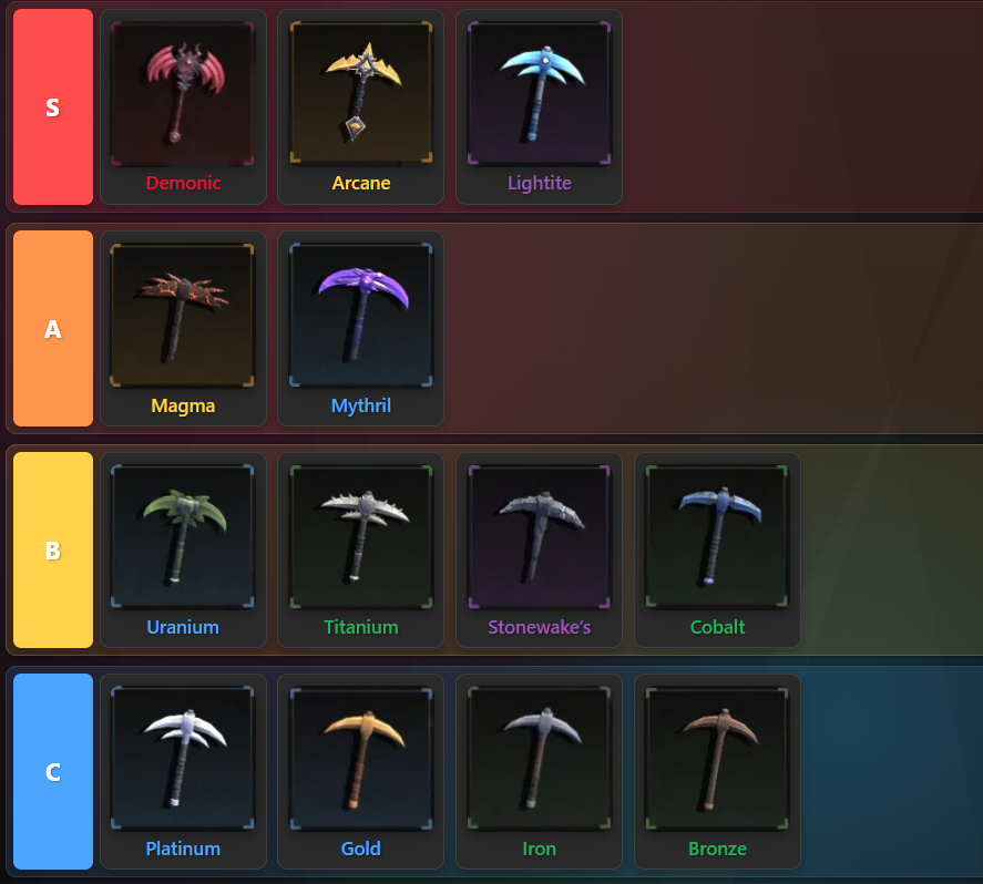 Чтобы не запутаться в выборе, мы подготовили тир-лист кирок в The Forge: