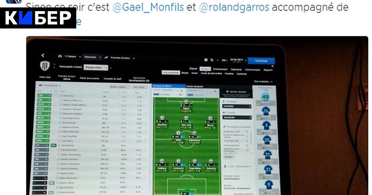 Йоан Кабай примерил на себя роль Алана Пардью, совмещая игру в FM с просмотром "Ролан Гаррос". Видимо, игрок "ПСЖ" до сих пор ностальгирует по бывшему клубу и партнерам.