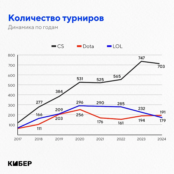 В CS и League of Legends рост продолжается, хоть и медленный.