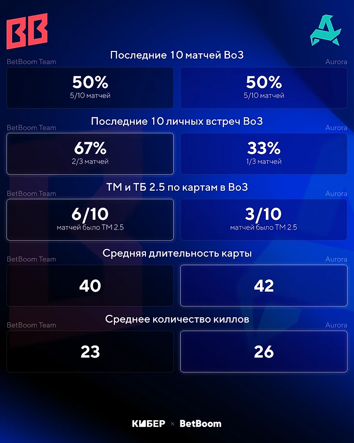Команды дважды встретились на PGL Wallachia S4: на групповом этапе сильнее была BetBoom Team, а в плей-офф – Aurora.