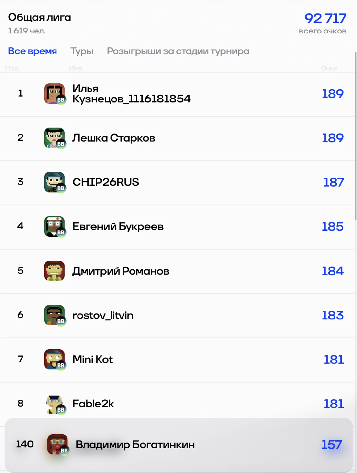 Я использовал удвоение на Tundra, так что падение в общей таблице продолжается: уже 140-е место и отставание в 32 очка от лидера.