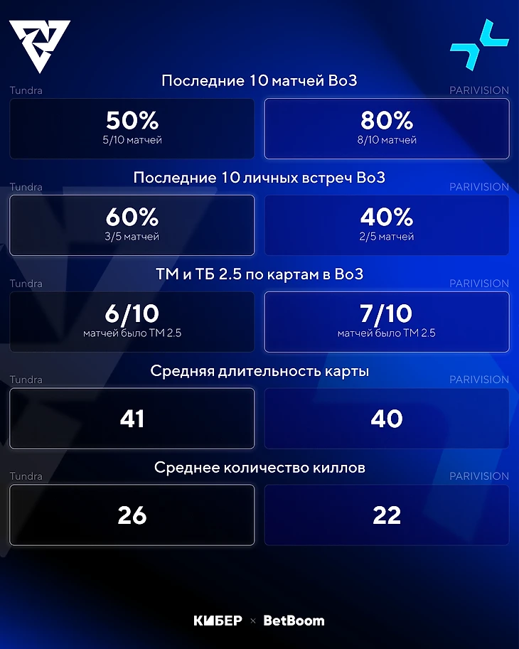 Оба состава рассчитывали на большее, чем утешительный финал, поэтому есть шанс, что тильтанувшие игроки не будут стараться победить. 9Класс сегодня отмечает день рождения и написал в своем тг-канале, что сегодня PARIVISION будет играть на победу. Если Tundra не подведет, то можно поставить на тотал карт больше (2,5) с коэффициентом 2,05.