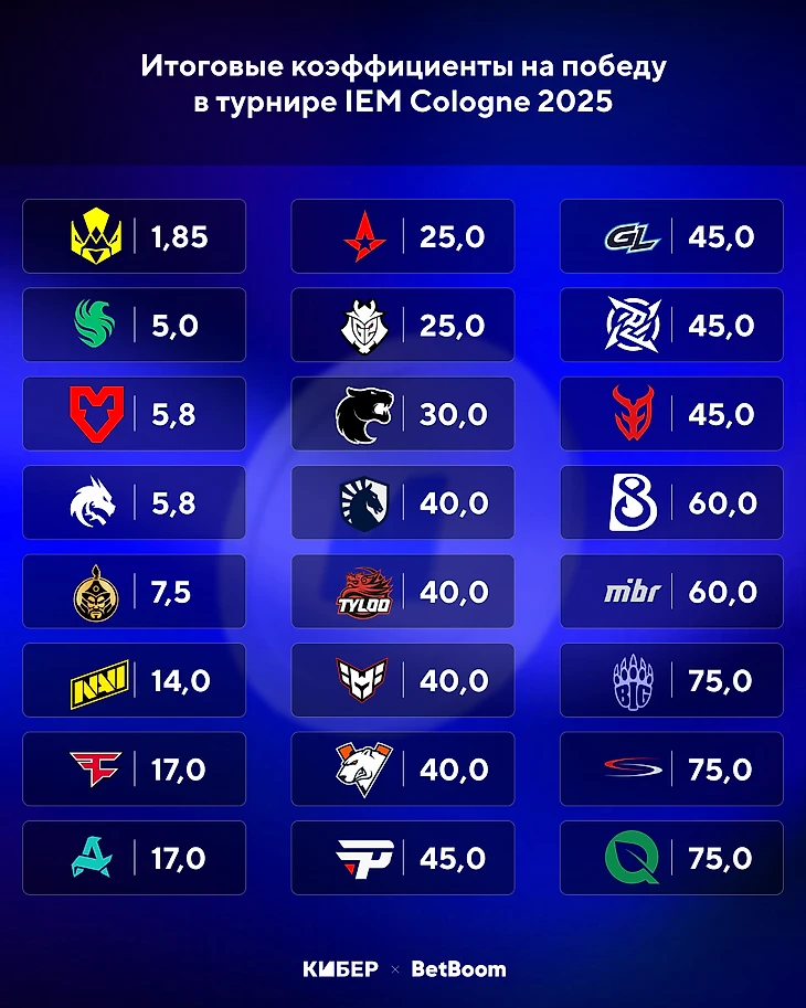 23 июля стартует IEM Cologne 2025 – первый турнир сезона с топ-командами. В некоторых составах произошли замены, так что турнир станет важной отправной точкой для оценки решаффлов. Команды поборются за призовой фонд в $1 000 000. Определить фаворитов нам помогут коэффициенты от BetBoom, а в конце мы дадим свой прогноз на исход турнира.