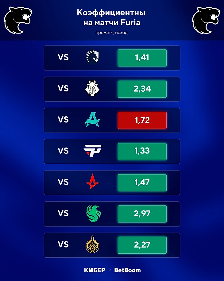 Перед началом FPG #2 Furia делила третью строчку с G2 в прогнозах BetBoom. Но при Falcons и Mongolz подобная оценка выглядела завышенной. И первые результаты это только подтвердили: тяжелая победа над Liquid, непростой матч против G2 и поражение от Aurora. И только реванш в матче с Pain подарил шанс на выход в плей-офф.