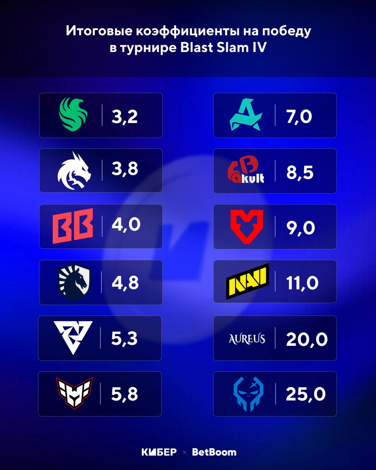 С помощью коэффициентов от нашего партнера BetBoom определим фаворитов Blast Slam IV.