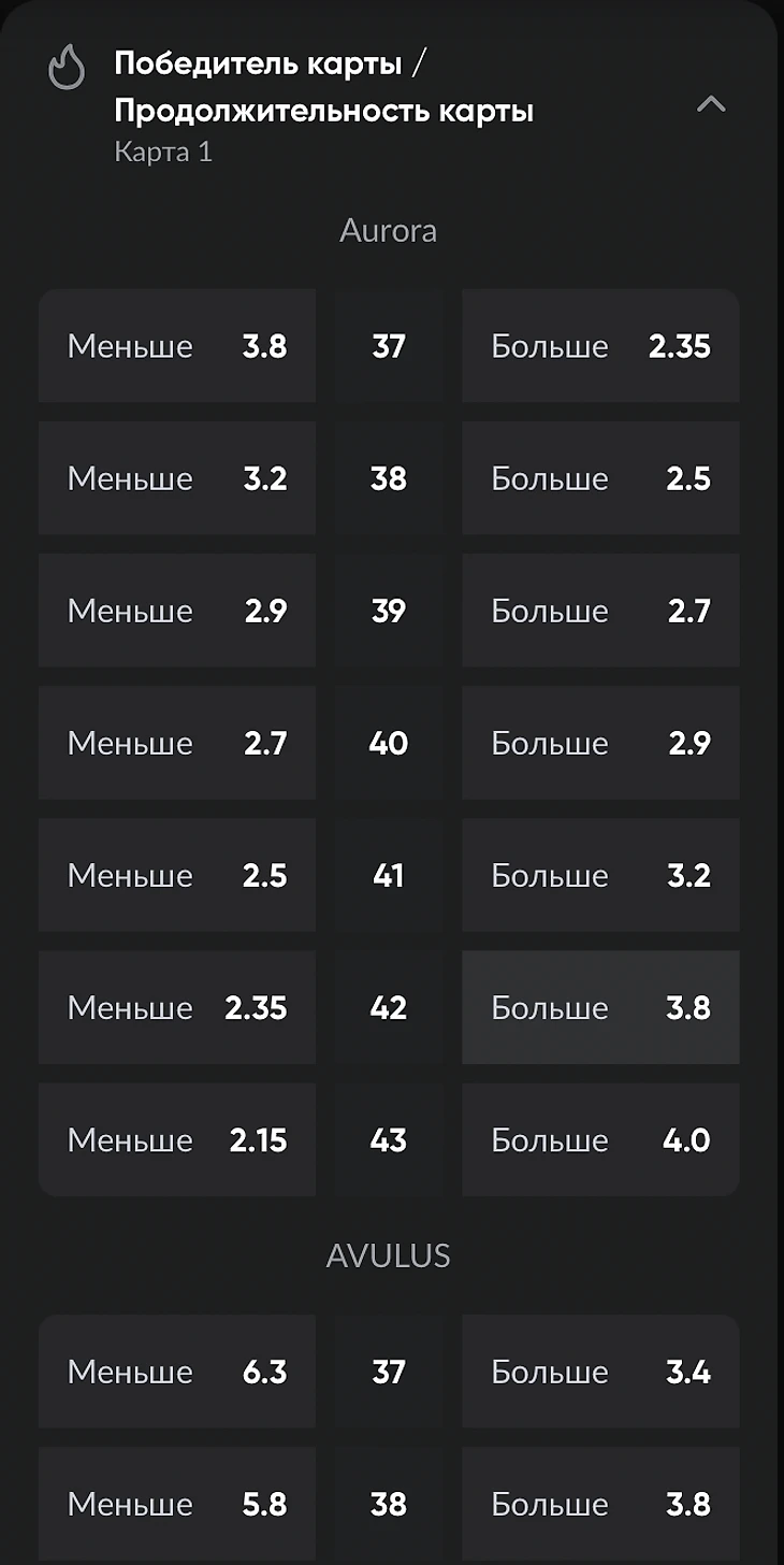 «Победитель карты + продолжительность карты» – это комбинированное пари, где игрок одновременно прогнозирует какая команда выиграет карту и сколько времени продлится игра – больше или меньше указанного тотала минут. Чтобы ставка выиграла, должны выполниться оба условия