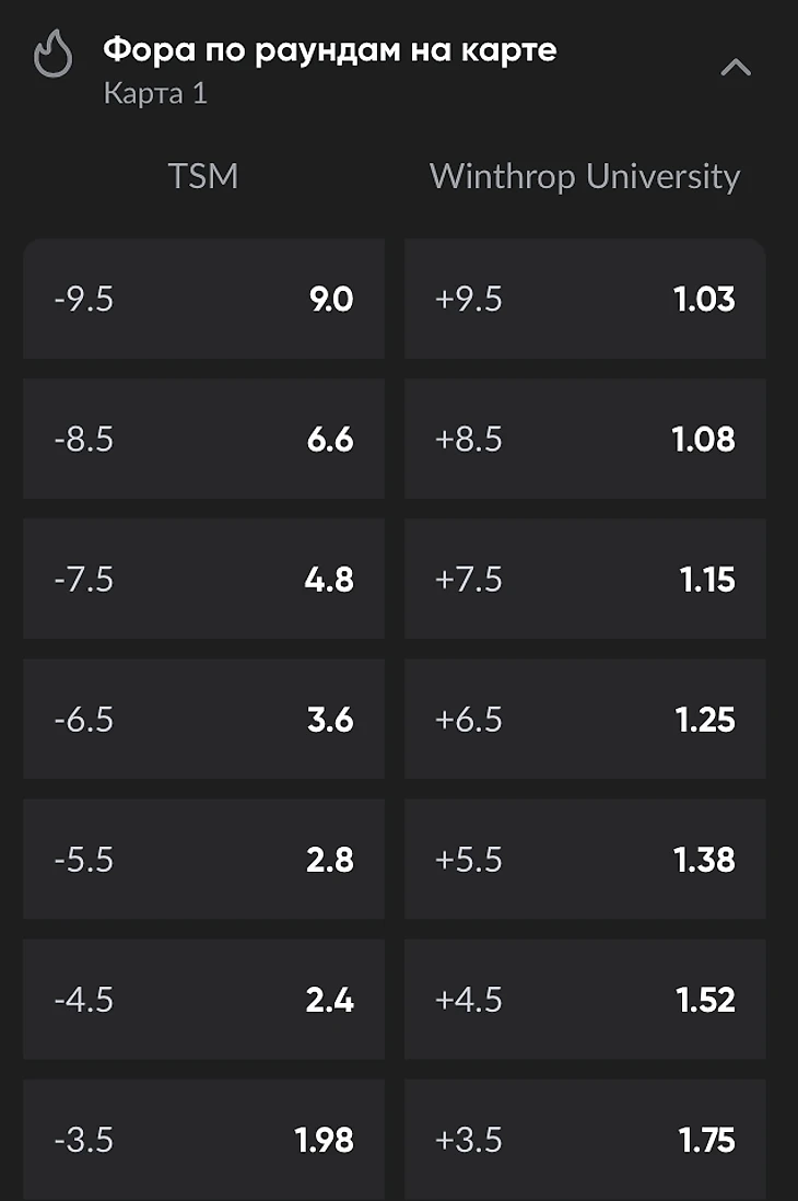 Фора по раундам – это ставка, которая учитывает разницу между количеством выигранных раундов за карту у соперничающих команд. Такой тип пари позволяет уравнять шансы, если одна команда явно сильнее другой.