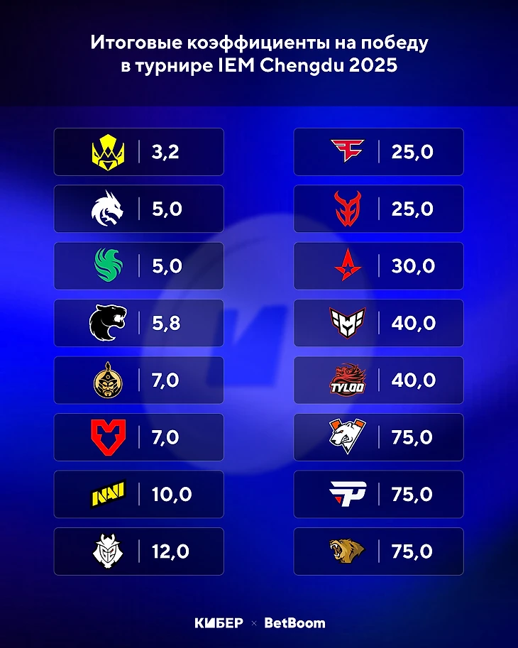 VP – на последнем месте, Spirit – финал. Изучаем кэфы на IEM Chengdu 2025