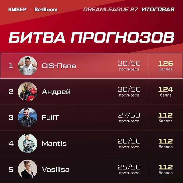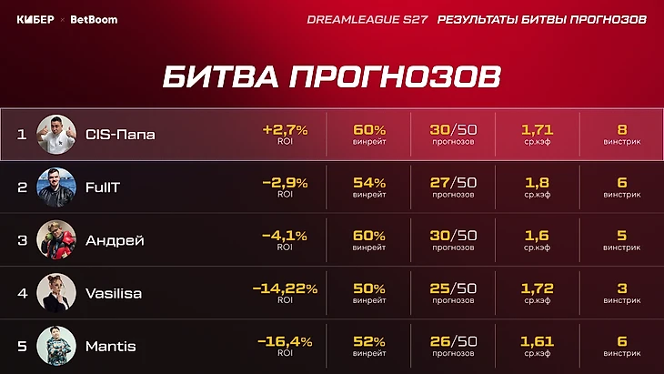 Итоги Битвы Прогнозов. CIS-Папа забожил в последний день