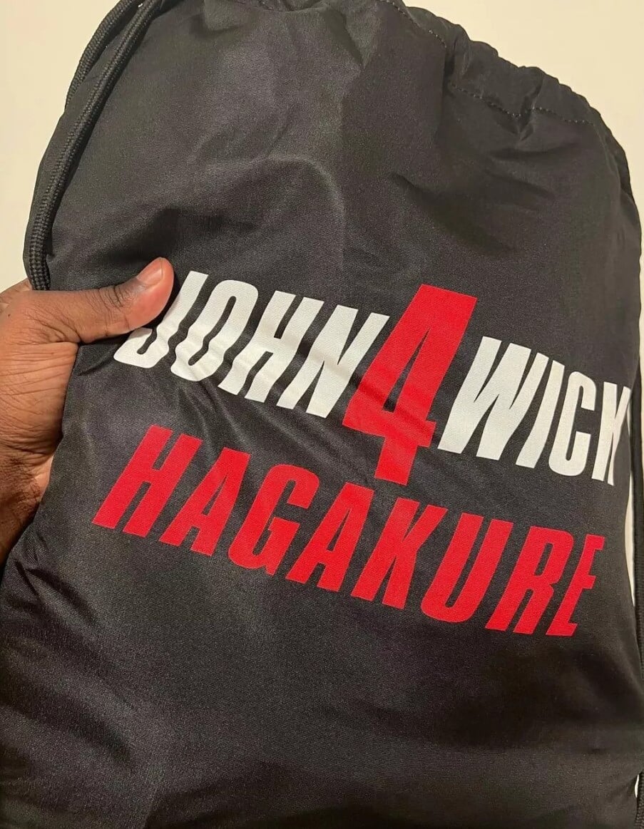 Канадский актер Шамир Андерсон показал сумку с логотипом фильма «Джон Уик 4», на котором указан подзаголовок «Хагакурэ».