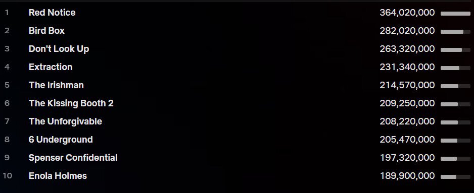 Онлайн-кинотеатр Netflix представил статистику просмотров фильмов и сериалов с 27 декабря по 2 января.