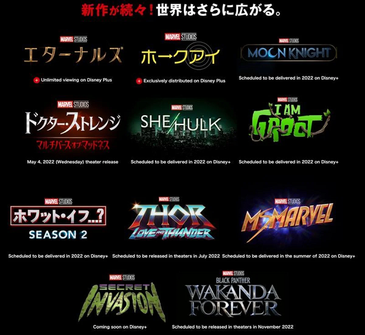 Японский сайт Marvel представил график релизов компании на 2022 год.