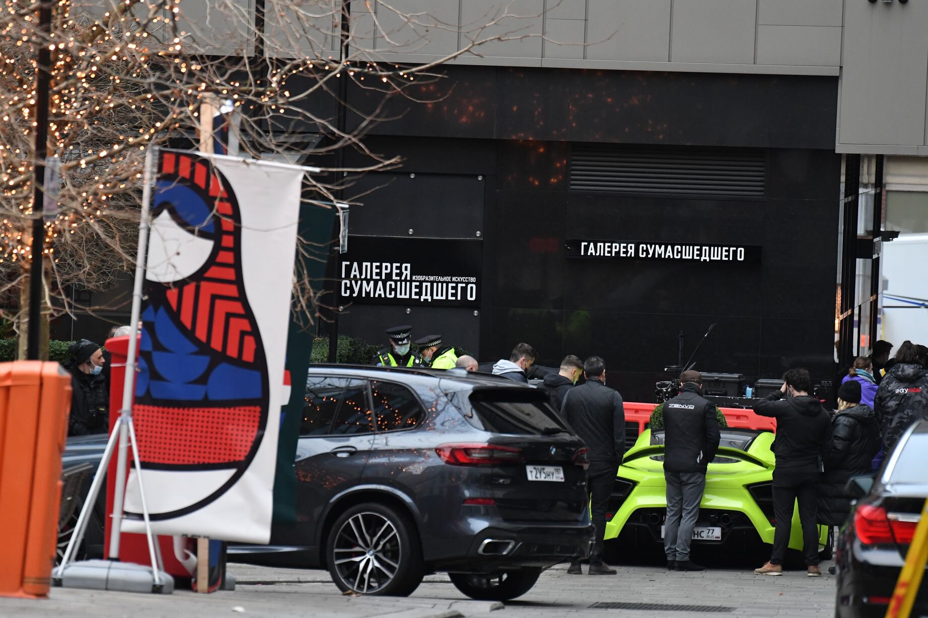 На одной из площадей Лидса повесили вывески и плакаты на русском языке, а на машинах поставили номера, стилизованные под российские. Актеры массовки при этом одеты в шапки-ушанки.