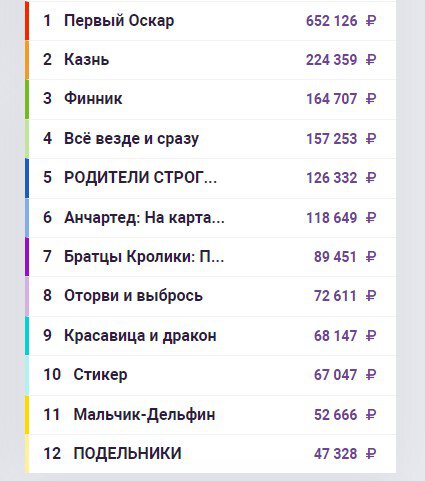 Тройку лидеров замкнул «Анчартед: На картах не значится» – 13,6 млн рублей за прошедшие выходные. Общие сборы фильма в России составляют 1,4 млрд рублей.