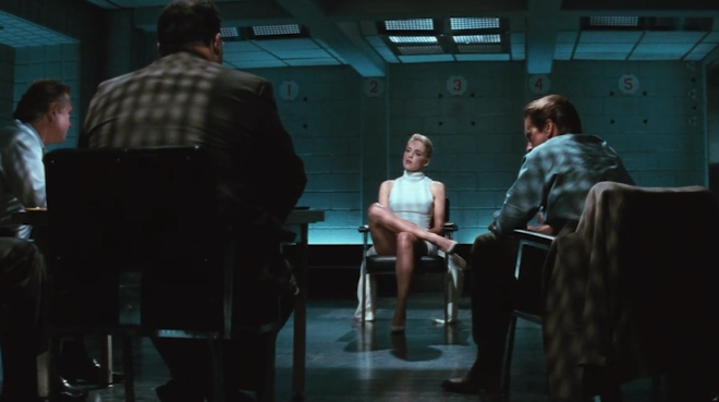 Фильм «Основной инстинкт» вышел в 1992-м году. В одной из сцен Кэтрин Тремелл, которую сыграла Шэрон Стоун, вызвали на допрос в полицейский участок. По ходу сцены Шэрон Стоун раздевается до мини-платья и в один из моментов меняет положение ног, и тогда герои и зрители фильма понимают, что Кэтрин не носит нижнее белье.