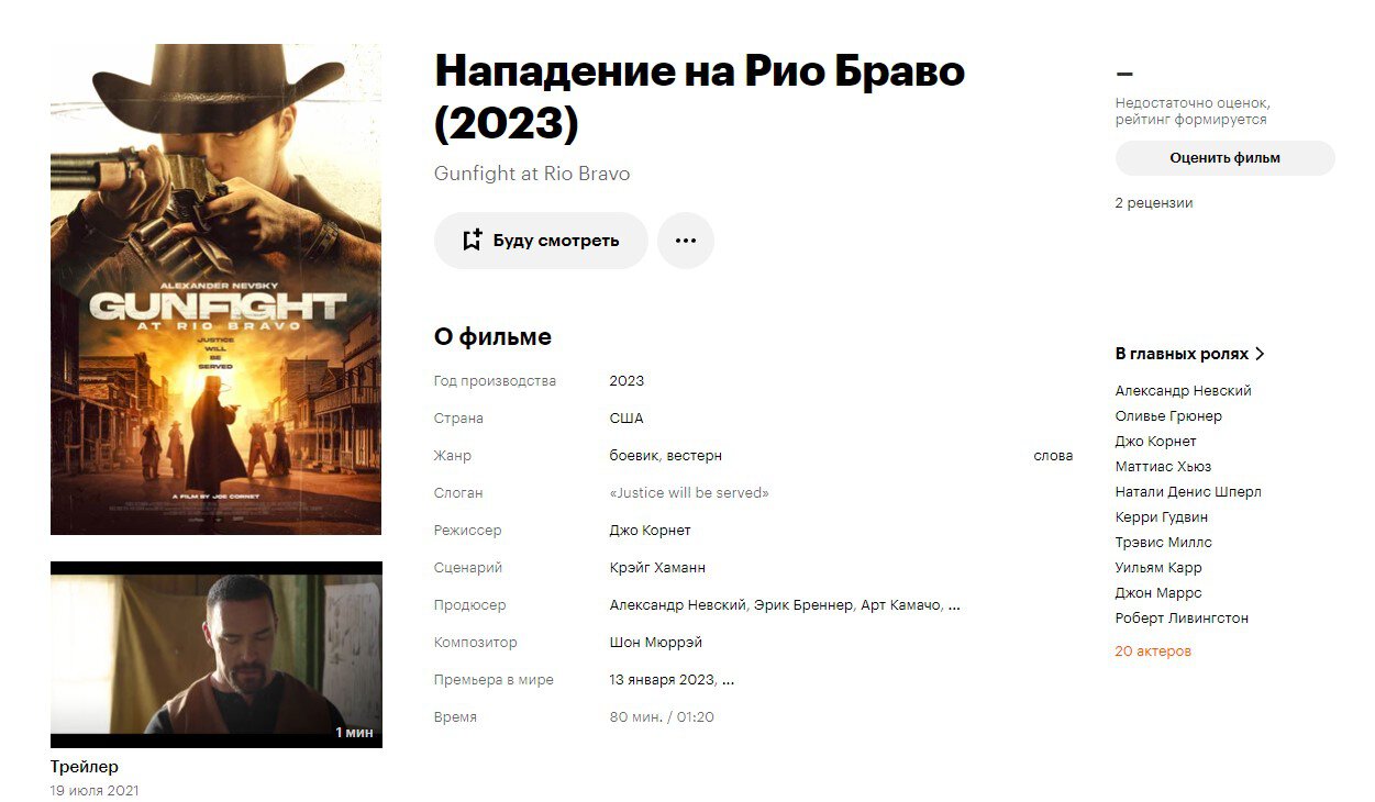 25 января фильм «Нападение на Рио Браво», в котором Невский сыграл главную роль, имел среднюю оценку 9,4 на основе более 10 тысяч отзывов.