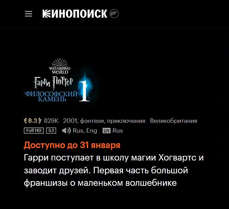На данный момент страница любого фильма «поттерианы» помечена специальной плашкой «Доступно до 31 января».