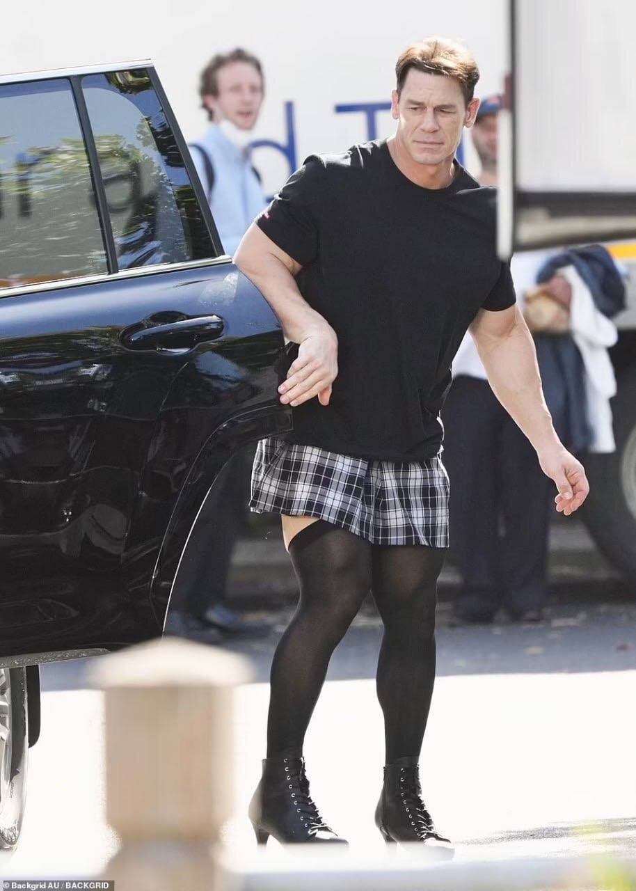 Джон Сина в чулках, юбке и на каблуках – на съемках нового фильма с Джимом Керри