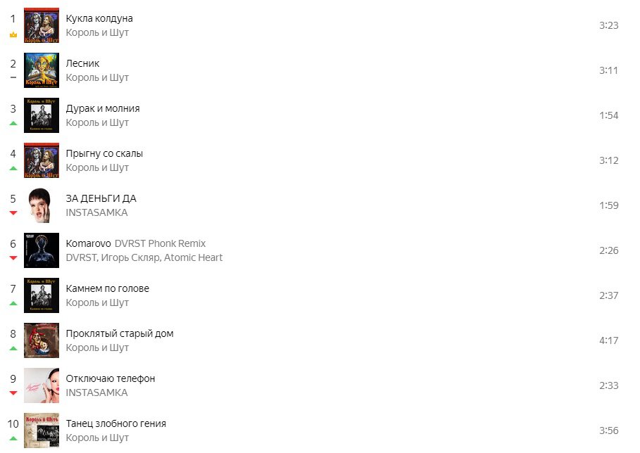 Верхние места чарта «Яндекс Музыки» заняли песни «Короля и шута».