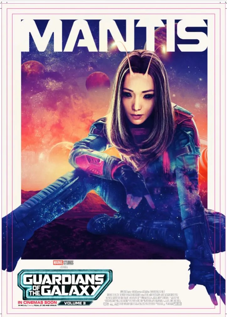 На них изображены главные персонажи фильма в исполнении Криса Пратта, Зои Салданы, Дейва Батисты и других.